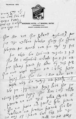 Samuel Gass suffered from severe arthritis pain in his later years and he sought treatments in spas in Michigan, Ontario, the Hot Springs of Arkansas, Miami, and Saratoga Springs. Unable to relinquish control of the new rag business, Sam Gass communicated with his family through the mail. His postcards and letters span a 9-year period from 1936 to 1945 and were written in Yiddish. In some of them, Sam addressed his children by their Yiddish names: Anna is Chana, Max is Matus, and but it is not known which of his daughters are Tana and Heneve.